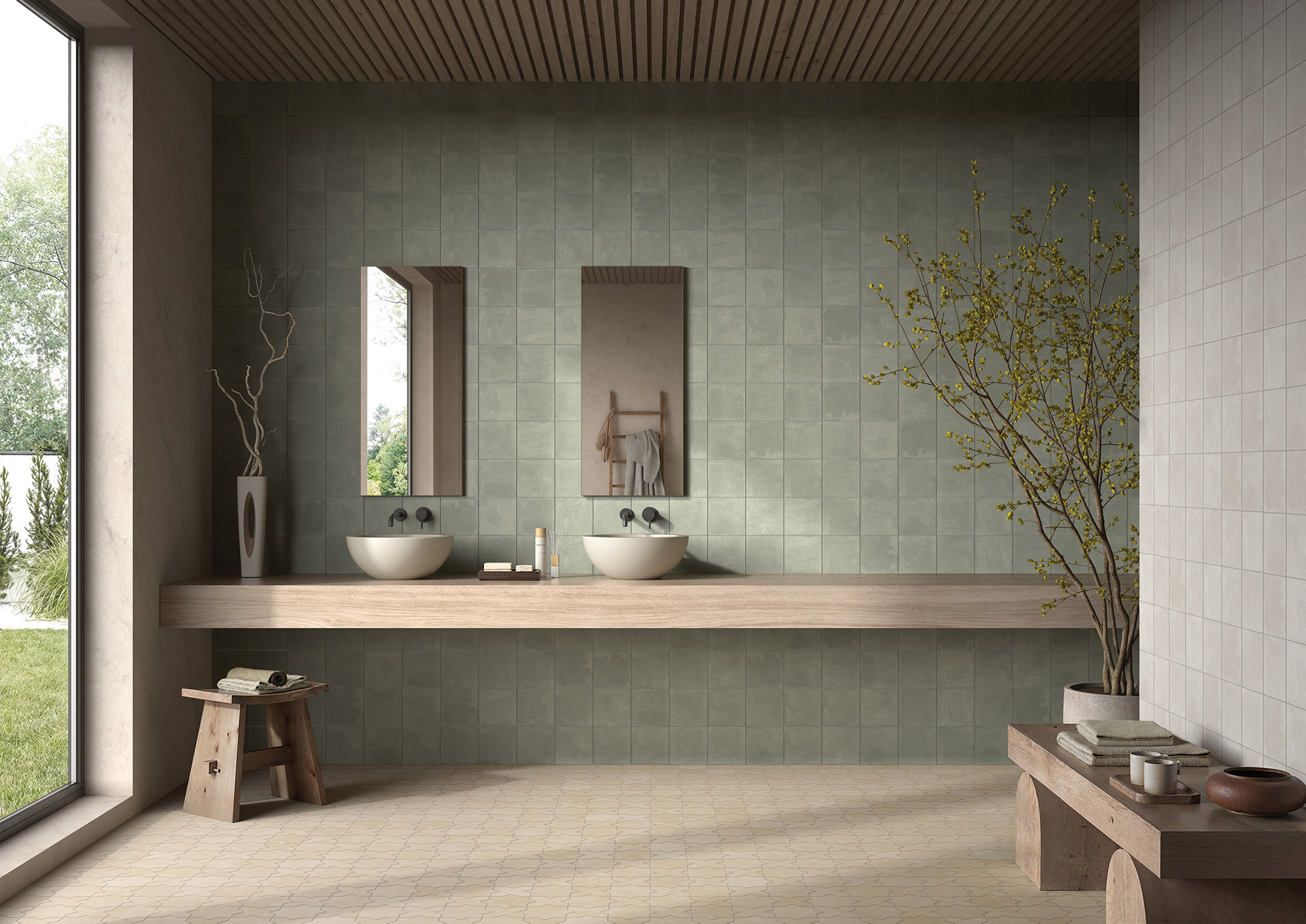 Alterra porcelain tile offers a fresh take on classic artistry with soft color tones and a natural, textured surface that evokes the tactile beauty of handmade craftsmanship. With a palette inspired by the natural tones of clay, sand, and stone, it supports a wide range of biophilic and wellness-focused interiors. Rooted in earthy essence, each tile reflects a connection to the raw, organic materials that have shaped design for centuries.
