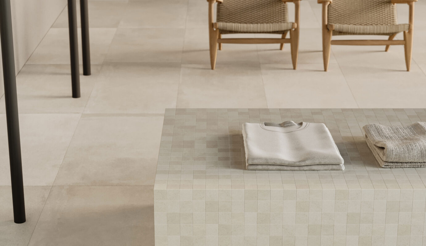 Available in a versatile range of neutral tones, Agile offers flexibility in layout and pattern application, allowing for seamless integration with metal, glass, and natural wood accents.