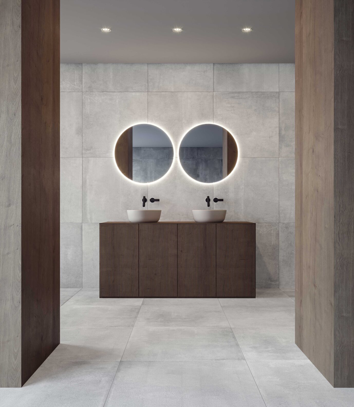 Agile porcelain tile embodies a worn concrete look that highlights an industrial approach, a contemporary style, and a sense of eclecticism. This collection is ideal for designing modern industrial interiors requiring visual impact and long-term durability. Its matte surface and subtle tonal variation evoke the raw authenticity of aged concrete, making it a standout choice for high-traffic environments such as office lobbies, retail storefronts, hospitality spaces, and urban multifamily developments.