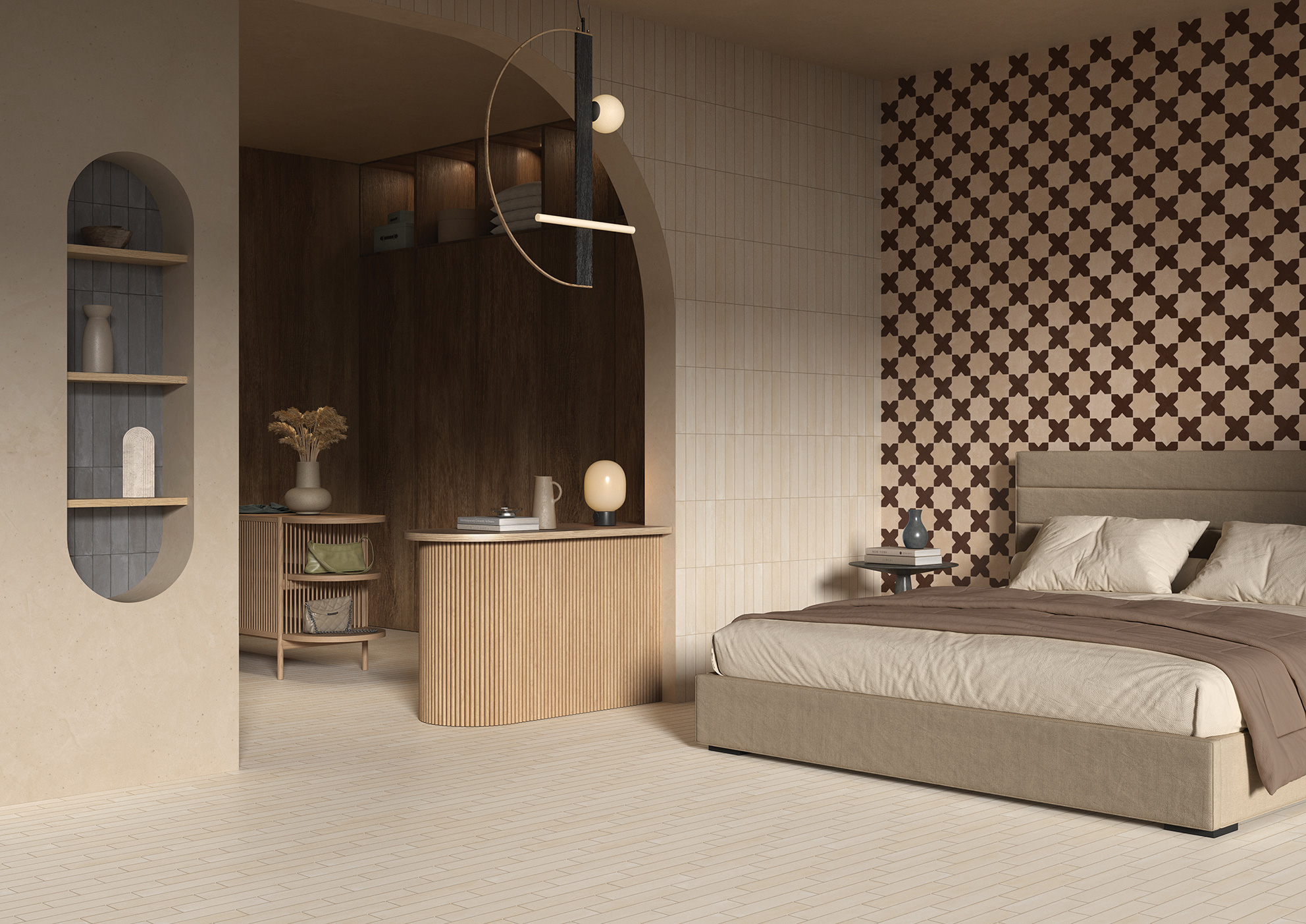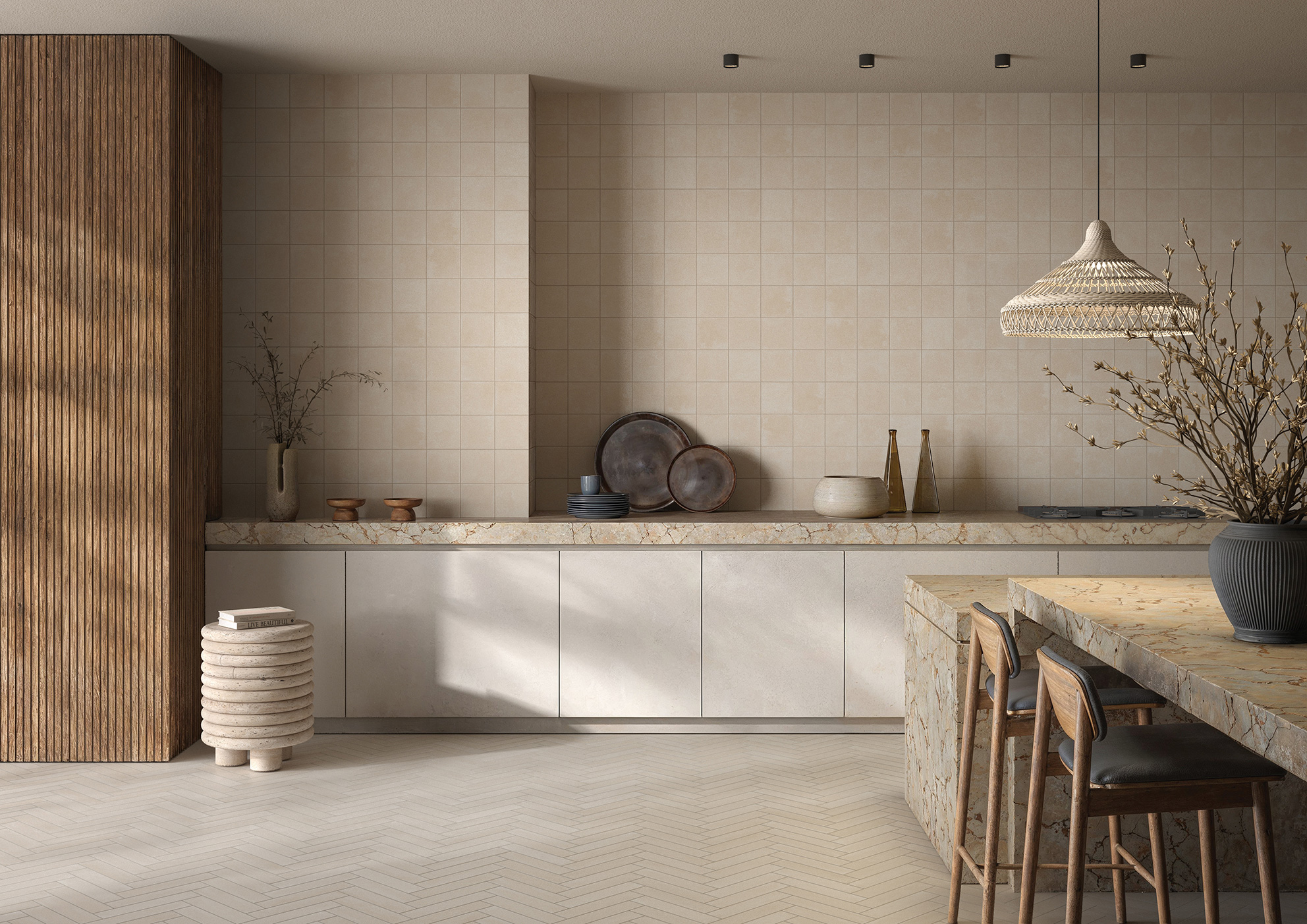 Alterra porcelain tile offers a fresh take on classic artistry with soft color tones and a natural, textured surface that evokes the tactile beauty of handmade craftsmanship. With a palette inspired by the natural tones of clay, sand, and stone, it supports a wide range of biophilic and wellness-focused interiors. Rooted in earthy essence, each tile reflects a connection to the raw, organic materials that have shaped design for centuries.